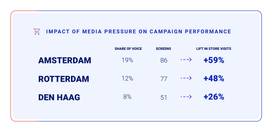 - Rotterdam: With an average 12% share of voice across 77 screens, this location delivered a 48% overall lift in store visits.